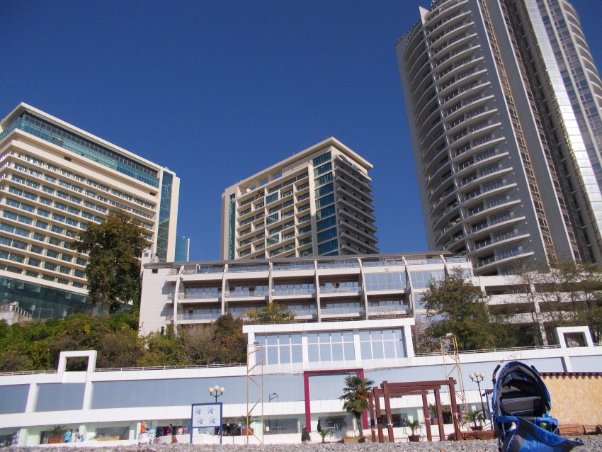 Но самое наглядное изменение в жизни города — не гастарбайтеры и не сувениры. Даже шпиль Морского вокзала теряется на фоне частокола новостроек на заднем плане: бум жилищного строительства — эхо Олимпиады. Пятнадцати- и двадцатиэтажки на горных склонах давно готовы, но по вечерам в зданиях горят окна двух-трех квартир. Над балконами верхних этажей развеваются баннеры с телефонами агентств недвижимости.