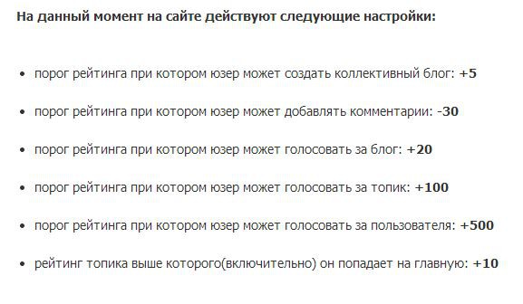Также можно плюсовать в профиле, баллов столько же, но имеется одна тонкость: можно это делать, если сам имеешь рейтинг минимум +500. Плюсить «в карму» можно в любое время и независимо от наличия топиков участника. Непонятка одна, почему нельзя минусовать в профиле? И вообще, это оценка чего, если чел может топиков не иметь и даже комментов?