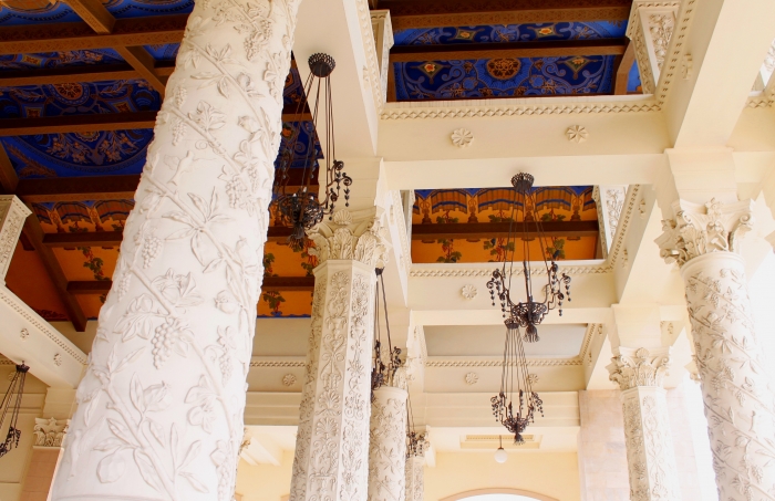 Когда только реконструировали морвокзал мне удалось несколько раз побывать внутри, в зале с чайкой под потолком и часами, побродить по открытым галереям, где фонтанчики, потом все закрыли, почему незнаю…