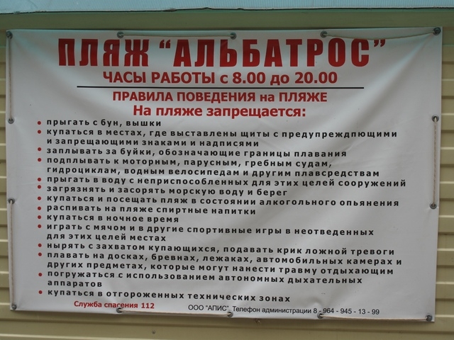 2. Была одна техзона на пляже, теперь 2. И это на 4-х пролетах между бунами. Мотоциклы ездят по головам. Недавно был в Дагомысе на пляже, там техзона очень грамотно работает. Инструктирует, что надо сначала отплыть подальше в море и там уже резвится на мотоциклах. И отдыхающие выполняют эти требования. А здесь пьяные водят, им все по барабану.