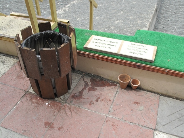 Таблички эти «модные» могут себе в зад повтыкать, авось и смысл какой появится. Это во-первых. А во-вторых, в правилах поведения курить не запрещается, а в-третьих — человек же со своей пепельницей ходит. Вот довели уже людей! И опять что-то не так?! «Борцы» достали уже. Подойдут если ко мне — пошлю на х..., да ещё и бычок об голову затушу, потому, что меру нужно знать. Во всём.
