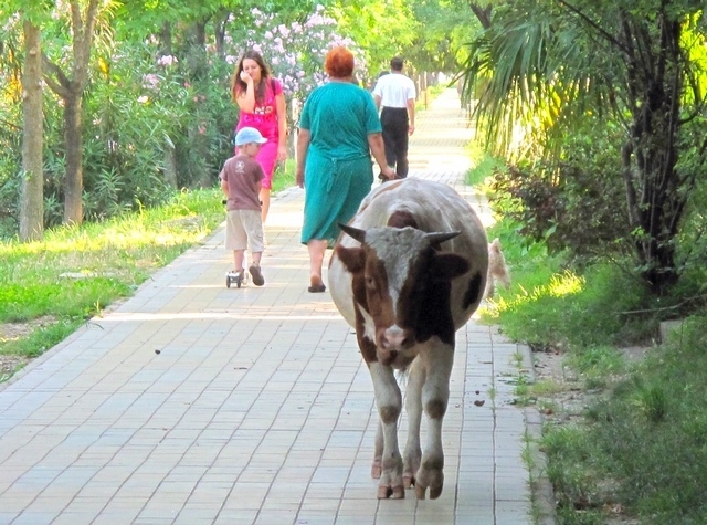 номер 13 — думы коровы: «и чего они кричат, что тротуары заняты… доски позора придумали… тьфу! (продолжая жевать)… лучше бы мусорки пониже сделали… чтоб прыгать аки коза не приходилось!»