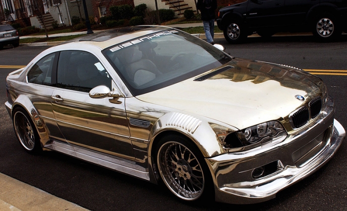 вы будете смеяться, но эффект золота и никеля добиваются наклеиванием на кузов авто специальных пленок. У нас в городе есть пара мест, где при наличии денег можно сделать «золотой» запорожец, например… Только такой тюнинг слишком вызывающе выглядит. ИМХО.