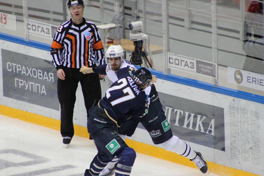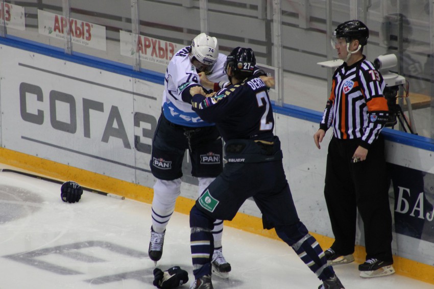 Судьи, вместо того что-бы разнять хоккеистов сразу, дождались пока изобьют Романа Дюрлюка, а болельщики станут, не на шутку, возмущаться происходящим!!!