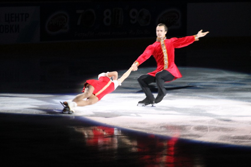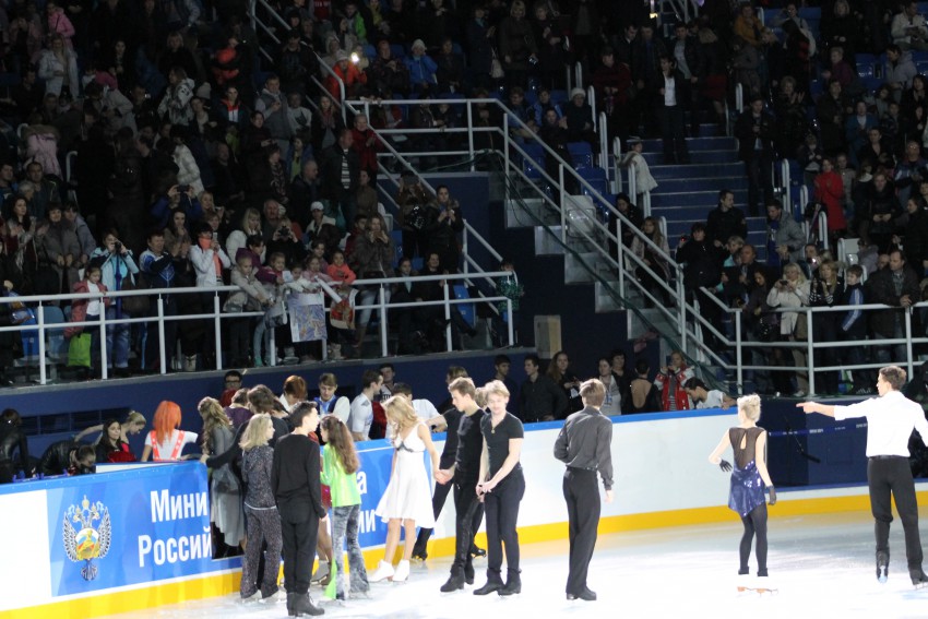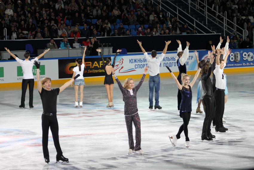 Евгений Плющенко открыл показательные выступления специально подготовленным номером разогревая зрителей, позже выступил второй раз порадовав поклонников. После небольшого перерыва соревнования продолжились, собрав настоящий аншлаг, свободных мест не было, и даже трибуны третьего этажа ледового дворца были полностью заняты, я такое видел только на зимней Олимпиаде этого года. Выступление звёзд настолько понравилось всем, что в конце почти всех выступлений фигуристов зрители скандировали--Молодцы, молодцы… не отпуская аплодисментами, и спортсменам пришлось почти полностью повторить свое выступление.На лед бросали букеты цветов, Евгении Тарасовой и Александру Морозову бросили хорошо завернутый подарок, несмотря что при выступлении Евгения едва не упала в углу катка. Наш чемпион--Максим Ковтун упал у самого борта посредине катка ловко превратив падение в элементы выступления и тем подтвердил свой высокий мастер-класс.