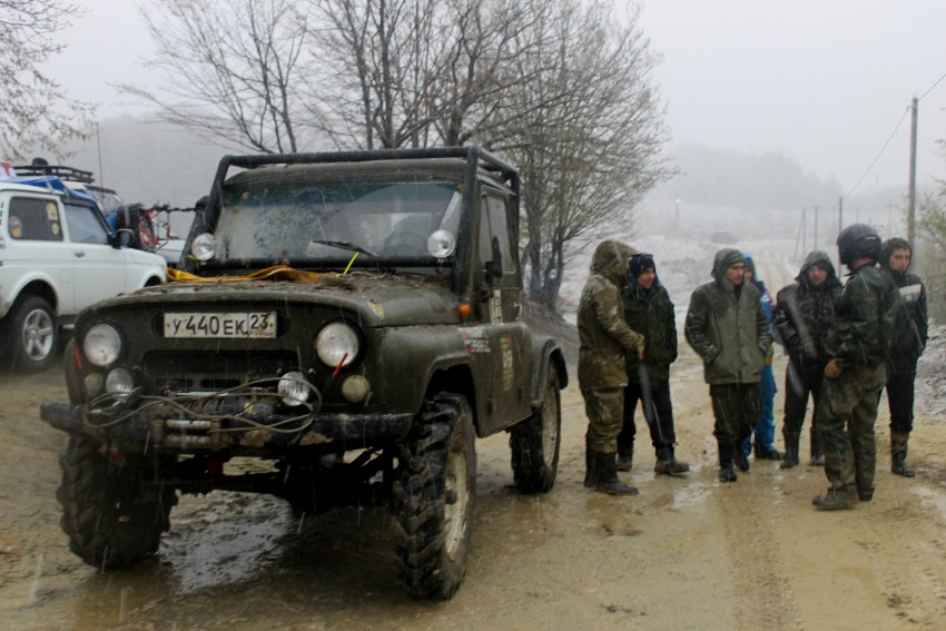 Снег, град и ветер неожиданно налетевший на город не помешал спустится на трассу в горы, где едва не сорвавшись в обрыв, мы на автомобиле «Нива» все-же нашли контрольный пункт №58 шестого уровня сложности, где по условиям соревнований участники снимали на фотоаппарат прохождения шестидесяти точек.