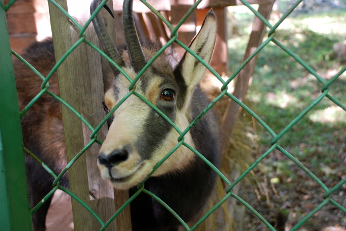 На следующем вольере написано «Волк». Просто и незамысловато. А волка там нету… А дети наши так хотели хоть раз в жизни увидеть страшного волка, который приходит и кусает за бок, стоит только к краю кровати подвинуться! Зато через сетку от «волка» скачет его законная добыча – серенький козлик. Странно. Козлик есть, а волка нет. Вот и верь после этого сказкам.