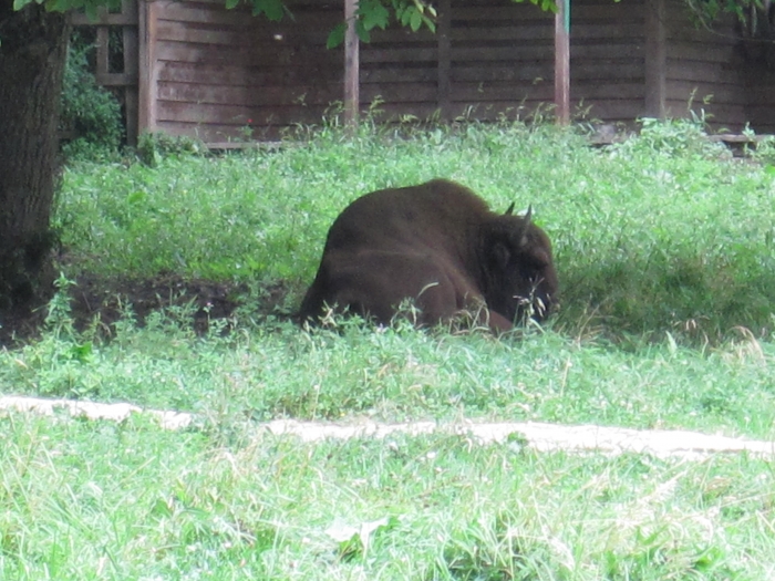 Зато дальше располагается очень просторный вольер, прямо пастбище целое. А обитает там краса и гордость заповедника – зубр. В начале ХХ века все поголовье этих животных было истреблено. А животное очень эффектное, могучее. Не знаю, где энтузиасты их откопали, но в конце прошлого столетия на Кавказ снова были завезены зубры. Их взяли под строгую охрану, и поголовье стало восстанавливаться. Позитив, в общем.