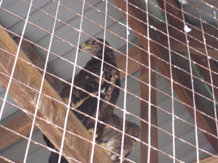 Рядом построена гигантских размеров клетка, настоящий дом. А в ней – хищные птицы. Как-то странно видеть этих гордых существ день-деньской сидящими неподвижно на какой-то сухой ветке… Это единственное, что произвело на меня какое-то удручающее впечатление.