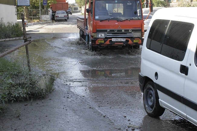 Водопроводная труба была повреждена с обеих сторон дороги.С одной стороны залатали.А со второй стороны до сих пор стоит дырявая.По слухам, ждут строительство дороги-дублёра, мол починим за федеральные деньги.