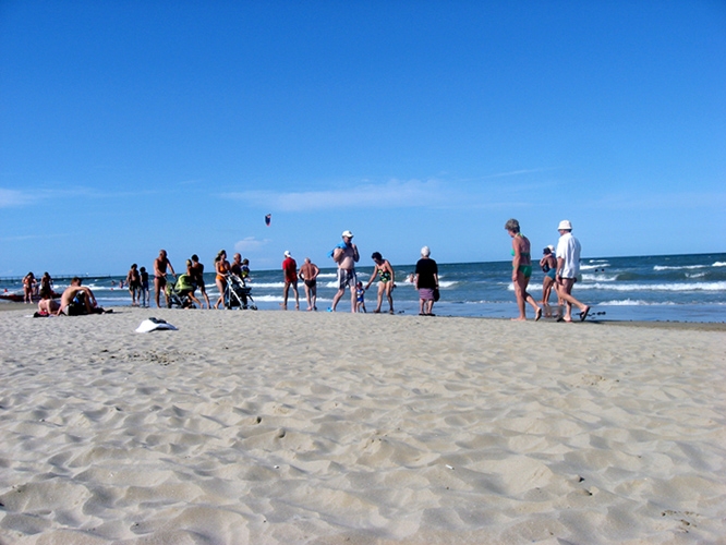 Скажу сразу: сравнение не вполне корректное. Там — широкая береговая полоса пляжа, а здесь — даже если и широкая, то малообустроенная или не обустроенная вообще (хотя чаще — узкая пляжная полоска). Но, тем не менее…