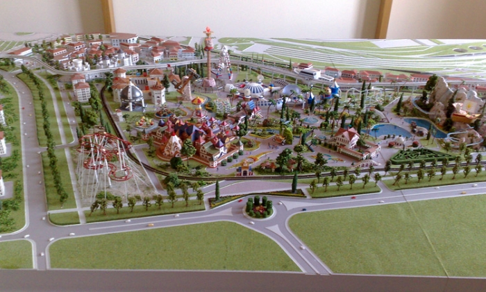 Качество исполнения макета на очень хорошем уровне. Говорят — лампочки горят, карусели вертятся. Сам этого не видел. Но внешне действительно очень ничего, жаль макет находится уже за постом охраны и просто так, без пропуска, к нему не попасть.