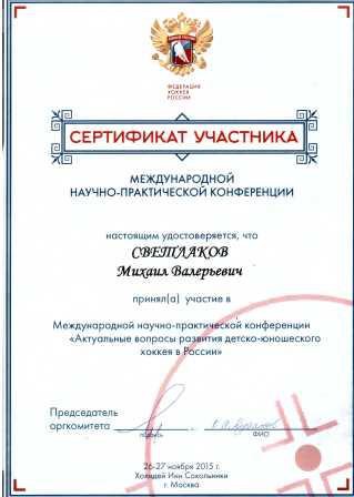 Муниципальное бюджетное учреждение физической культуры и спорта «Детско-юношеский физкультурно-спортивный центр по зимним видам спорта» города Сочи на данном мероприятии представлял старший тренер отделения хоккея Светлаков Михаил Валерьевич.