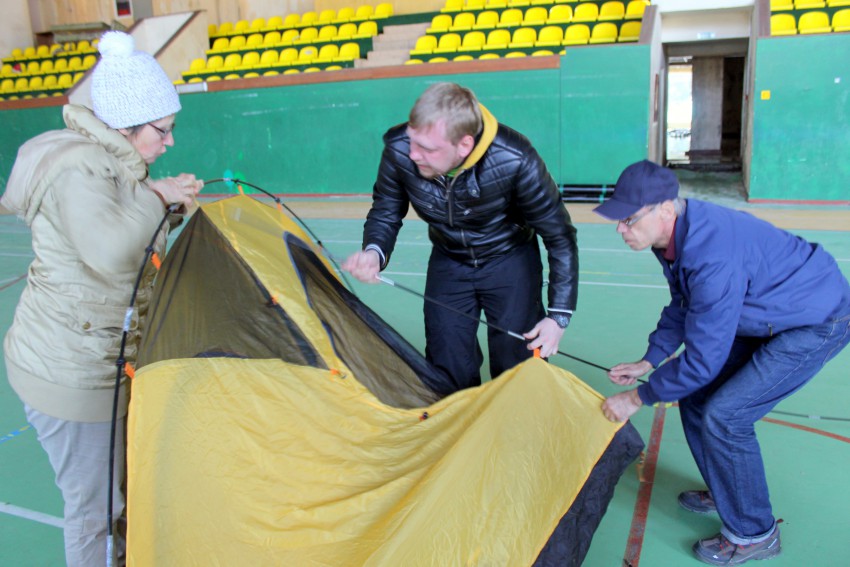 Разбившись на три группы провели соревнования по установке и сборке палатки на скорость. Два первых места и одно второе.