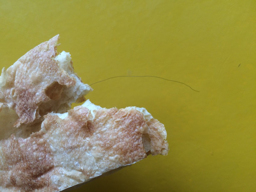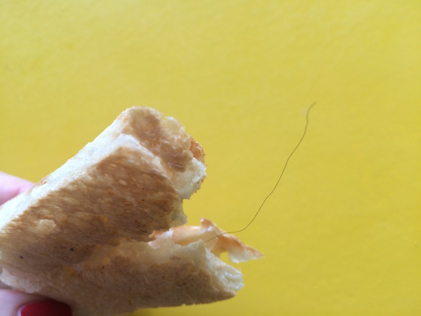 Пофоткала с разных ракурсов, чтобы было видно, что это не я приложила волосину, а она прямо в тесте…