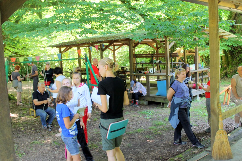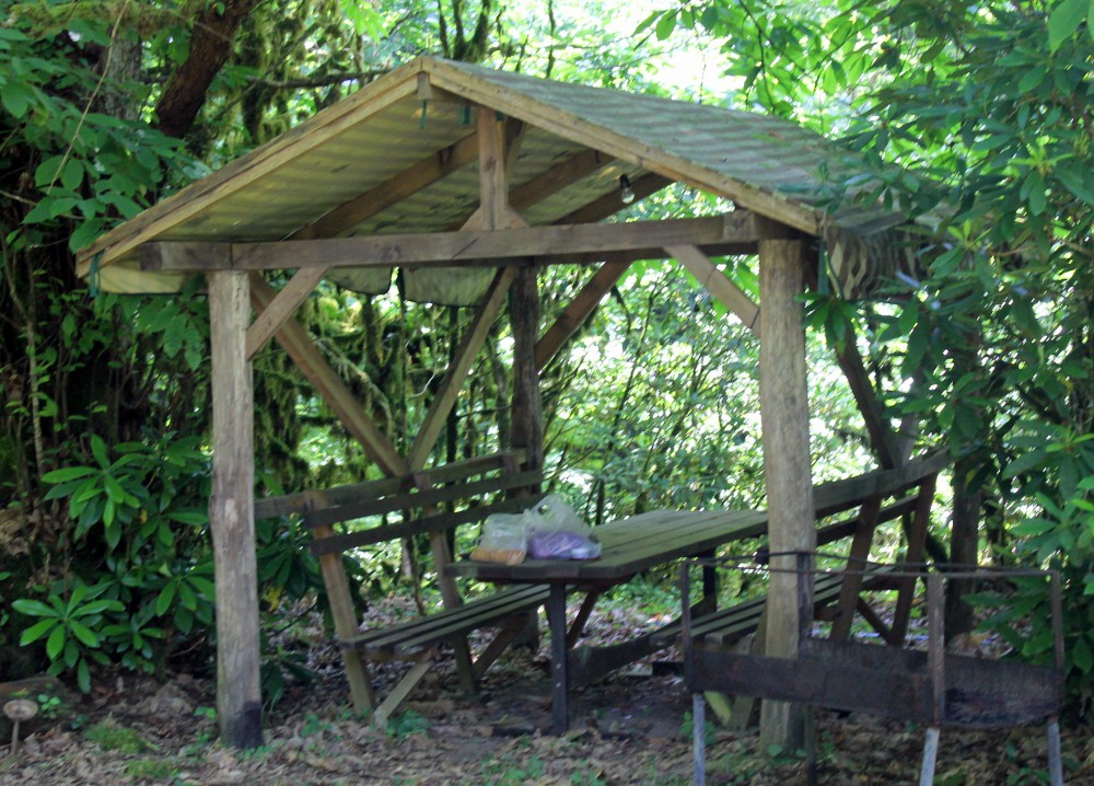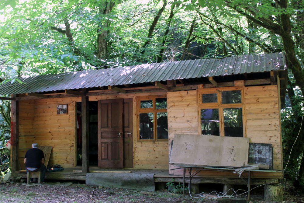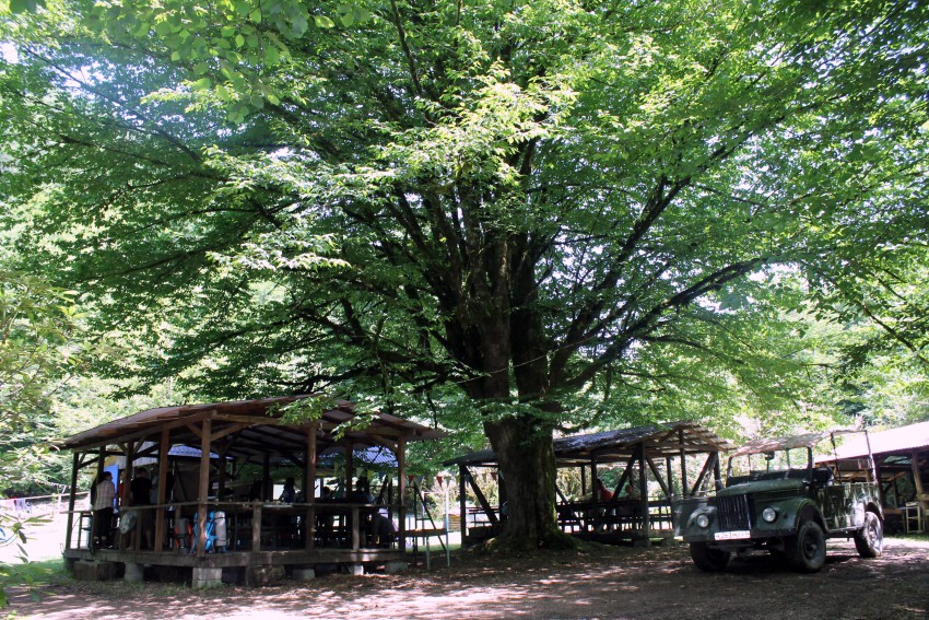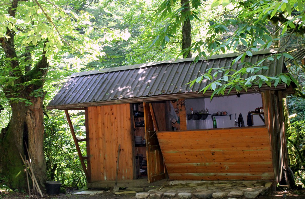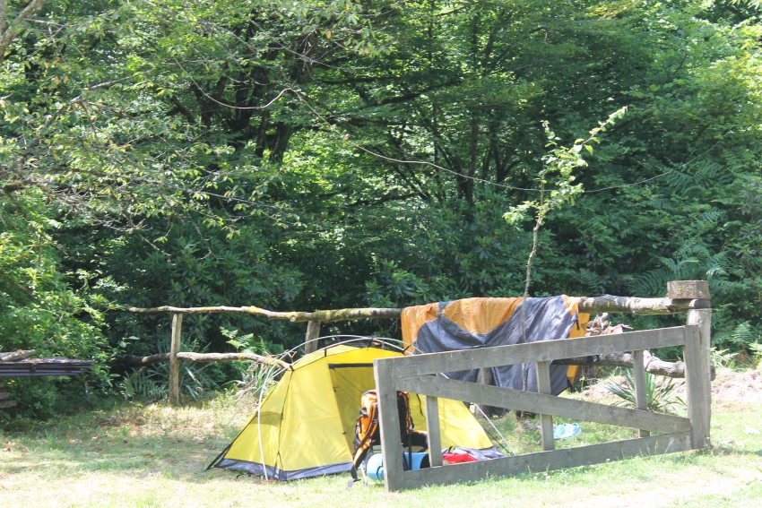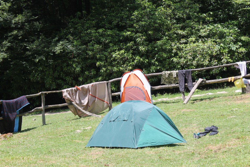 Спустились, перейдя реку Лоо вышли к подошве соседней горы. На ровной поляне огибаемой рекой расположилась летняя база отдыха. На частично огороженной территории четыри беседки посредине которых детская площадка и три домика. Разбили палатки.