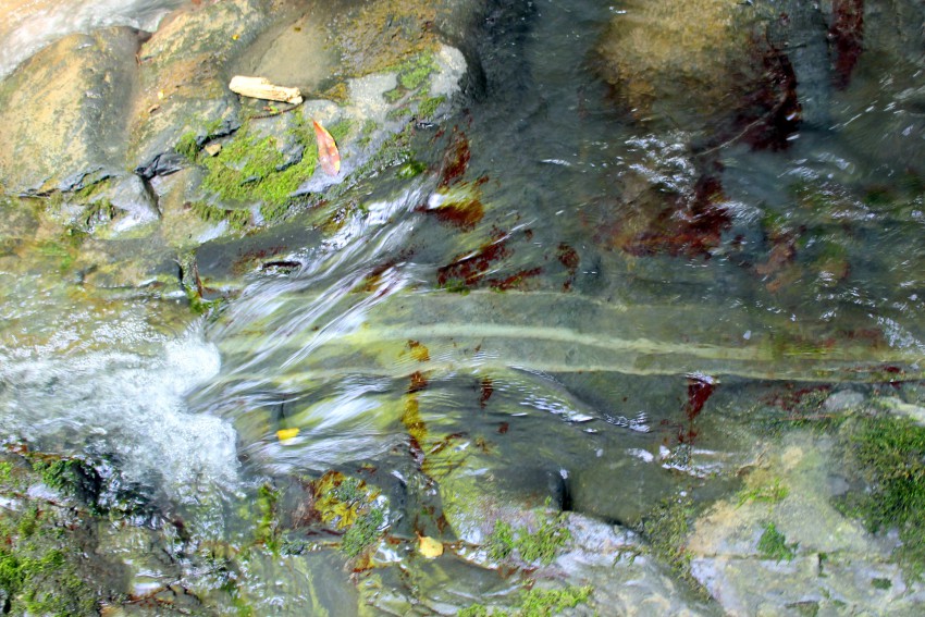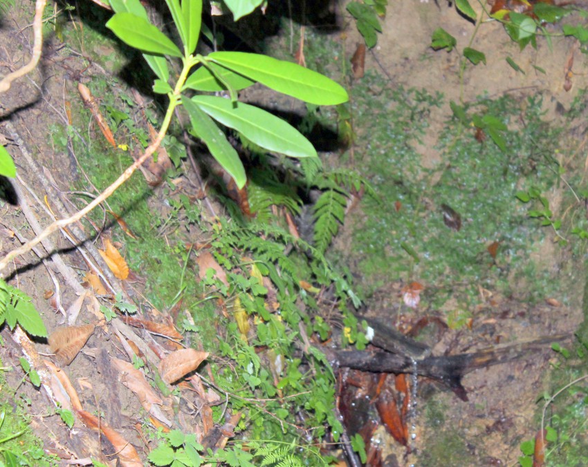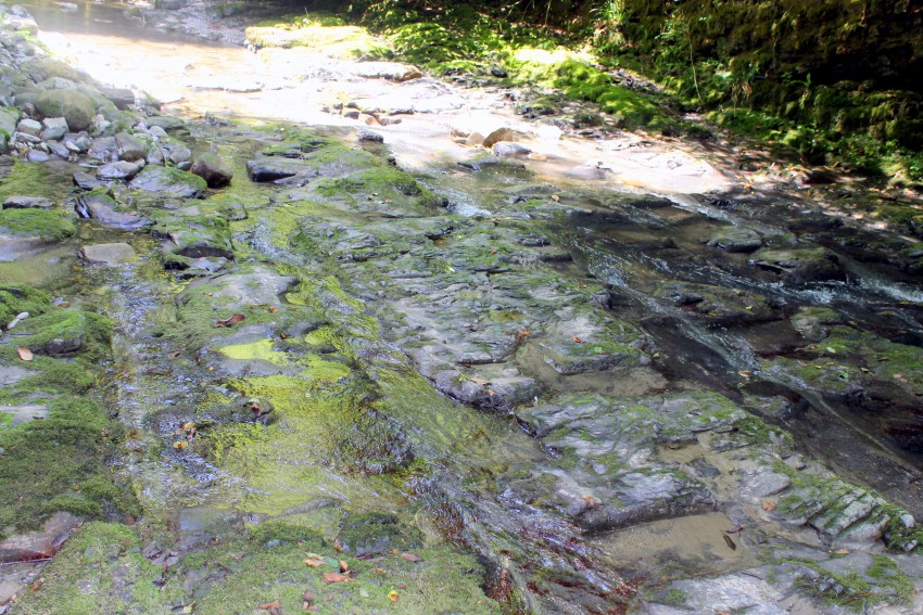Пройдя почти два километра вышли к водопаду горной реки. Из-за жары река пересохла и по причудливо сложенным камням трех метровой высоты стекал маленький ручей. Скрываясь от палящего солнца сделали небольшой «крюк» лесом и вышли к роднику на разбитой горной дороге.