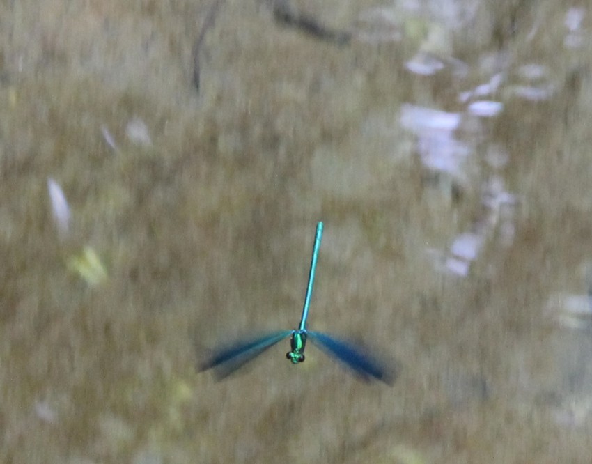 Множество стрекоз с крыльями чёрно-голубого цвета кружили над водой.
