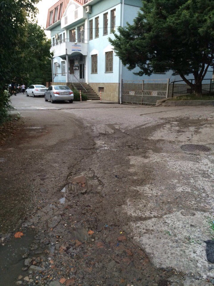 Мы, жильцы домов по ул. Чебрикова №36(350 семей) и двух 12-ти этажных домов №46, более 10-ти лет обращаемся во все инстанции города, чтобы нам отремонтировали дорогу возле наших домов, где постоянно пожилые люди и школьники ломают ноги ( см. фото). Глава города Пахомов еще в 2013 г. поручил главе центрального района, но никаких мер не принято. Не понятно, почему мер города не контролирует свои поручения? Мы, жильцы, готовим обращение президенту РФ, собираем подписи. И если нам в ближайшее время не отремонтируют дорогу — не пойдем на выборы, так как все методы обращений уже перепробовали.