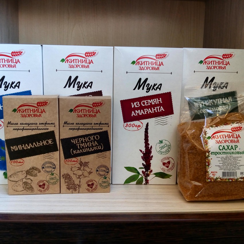За Здоровье здесь также отвечают злаки и бобы для проращивания, цельнозерновая мука, крупы и хлопья, семена льна, кунжута, амаранта, чиа, расторопши, натуральные супы и каши, чаи и травяные сборы, урбечи, соевые продукты, бездрожжевой хлеб из цельного зерна, полезные перекусы и лакомства, шоколад ручной работы, натуральный мёд, безопасная бытовая химия и многое другое.