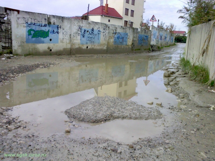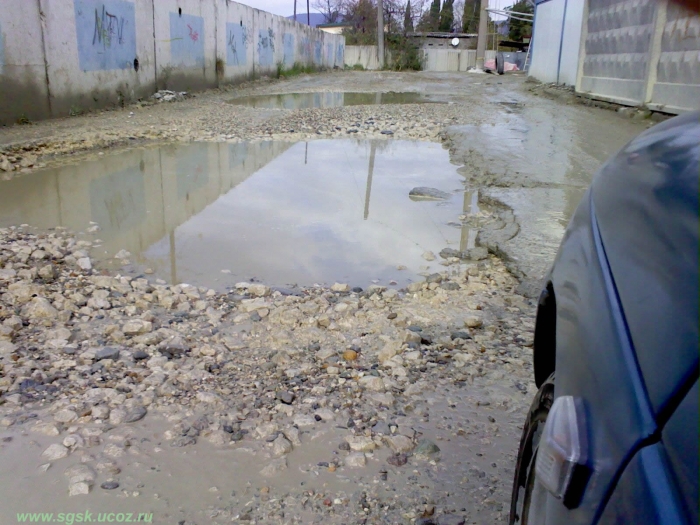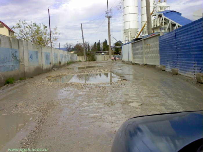 Хочу поделиться с вами уважаемые блогеры, на днях мне позвонил друг и рассказал вот такую историю. С момента строительства нового здания ЖД вокзала в Адлере не возможно стало ездить в за вокзальном районе, где проживает достаточное количество людей. Дорогу единственную артерию, которая соединяется с городом разворотили, в пух и прах, что на обычной легковушке не проехать, а если и проезжаешь, то рискуешь заработать серьёзную поломку своего авто. В то время когда дорога ведущая мимо стройки до рыбокомбината выметается под чистую, а дальше трава не расти дорога ушатана, и РБУ которое поставили там, все цементно бетонные отходы выметают с помощью водовозки которая запечатлена на фото во время работы, на дорогу которая и так еле, еле дышит.Со слов моего друга жители не однократно обращались к руководству строительства, с претензиями и жалобами, на что не было получено вразумительного ответа, так бедолаги и мучаются и не перестают ремонтировать своих коней. Глубина ям в некоторых местах составляет до 50см. Вот я и задаюсь вопросом не ужели руководству такого крупного строительного объекта негде взять грейдер и пару тройку КамАЗов осыпи, чтобы сделать дорогу более транспортабельной.