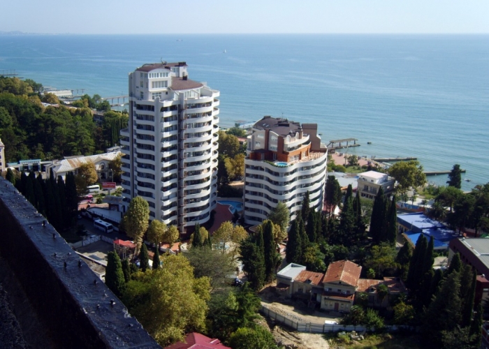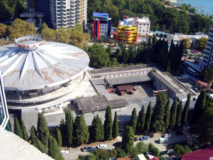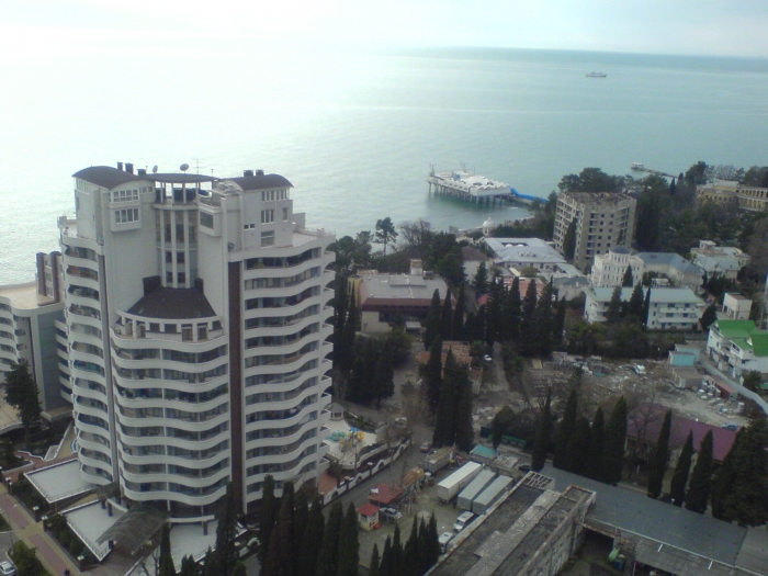 Дом стоит на месте, где я жила с детства. Мечтала сфотографировать ещё до начала строительства — не подпустили. Из-за забора несколько кадров сделала. А позже вообще не подпустили. Кое-что угадывается по оставшимся кипарисам.