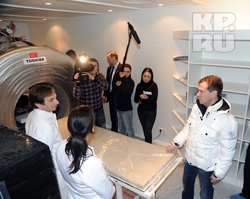 Как известно, Президент нынче совмещает рождественские каникулы с рабочими встречами в нашем славном городе. И вот, в рамках этих самых рабочих, Дмитрия Анатольевича повели на экскурсию в новую краснополянскую больницу, готовящуюся к открытию, в которой продемонстрировали новый и, особо отметили, ЕДИНСТВЕННЫЙ в Сочи МР-томограф. Сопровождающее Президента краевое и сочинское начальство пояснило, что аппарат куплен в почти 2 раза дешевле. На что Президент вспомнил недавний скандал с покупкой томографов, отметил что, мол, сэкономили, молодцы…