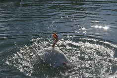 Видимо радуясь теплой погоде они показали маленькие акробатические этюды на воде. Кульбит с переворотом!!! А после номера положены аплодисменты.