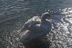 Теплый день радует не только нас. Уже знакомое семейство гусей устоило себе душ