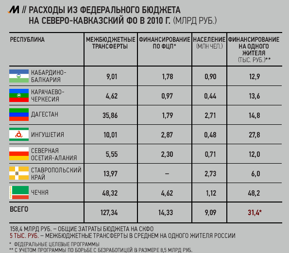 На одного жителя Кавказа бюджет тратит в шесть раз больше, чем на среднестатистического россиянина.