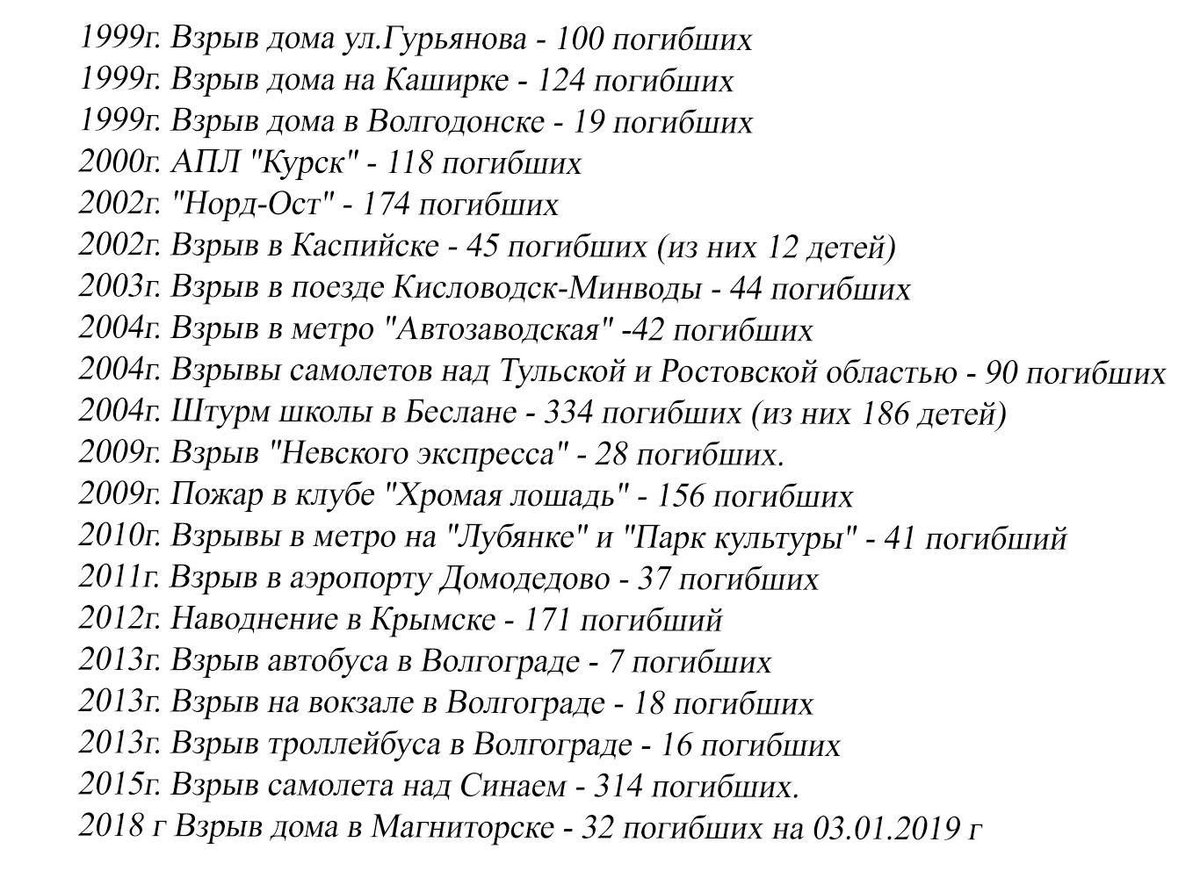 Конечно бред. Терракты были и до этого, почему ведёшь отсчёт с 1999, интересует только этот отрезок времени?