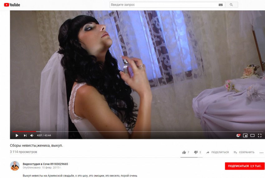 Снять какой либо эпизод при огромном скоплении людей и тесноте, с наиболее выгодного ракурса, выжать из своей техники максимально возможное качество, не потеряться в той суете, которая случается на армянской свадьбе. Конечно понимание происходящего приходит с опытом и такой опыт дорогого стоит потому, что это залог качества свадебного фильма. Ну и вишенка на тортик, это опять круговые танцы в конце выкупа, здесь уже участвуют и жених, и невеста. Мой излюбленный приём это съёмка танцев ДВУМЯ КАМЕРАМИ, потом на монтаже можно на основе снятого материала сделать клип который будет классно смотреться. Но как говорилось выше, к сожалению две камеры не всегда присутствуют на свадьбе.