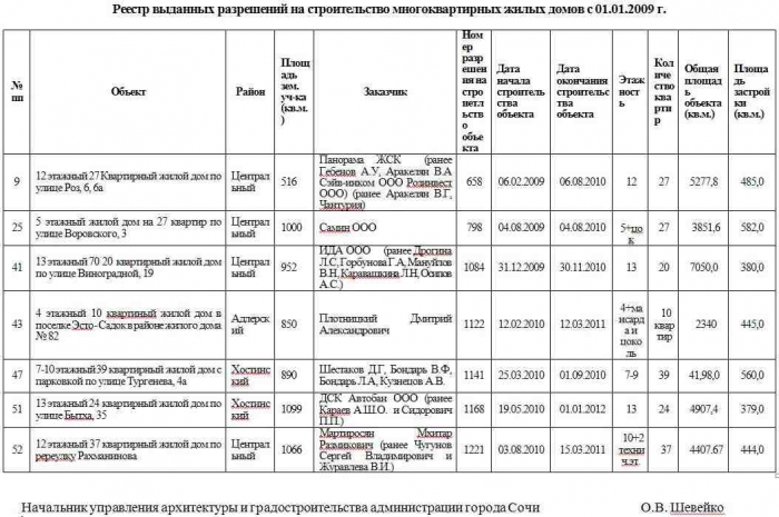 увидеть, что практически все высотки-самострои в Сочи усилиями Администрации перекочевали в Реестр легальных, без всяких юридических оснований…