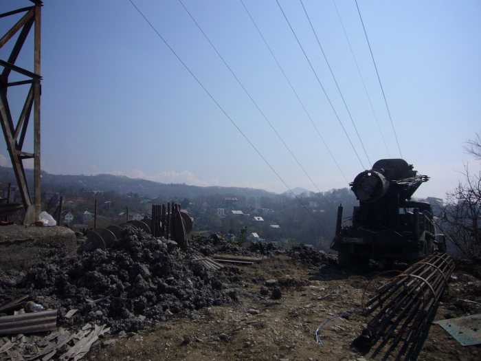 Видно справа от основания опоры как близко располагается фундамент новой опоры.
