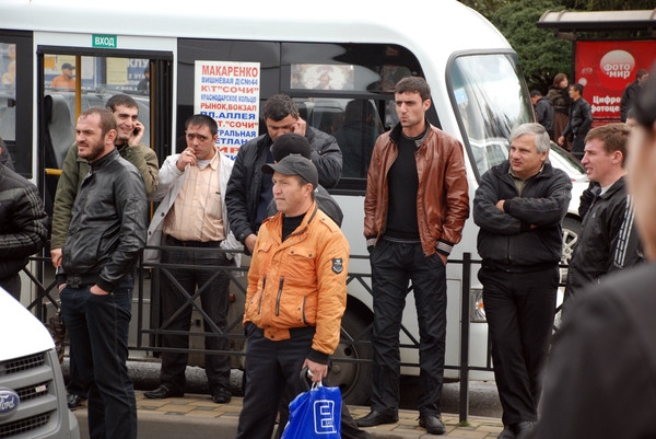 несколько человек (водителей) активно прессингуют тех водил, которые таки работают на маршрутах… крики, оры… жесть…