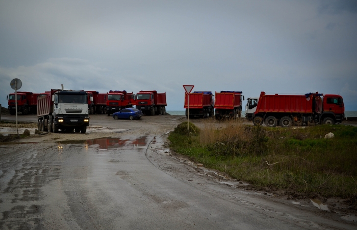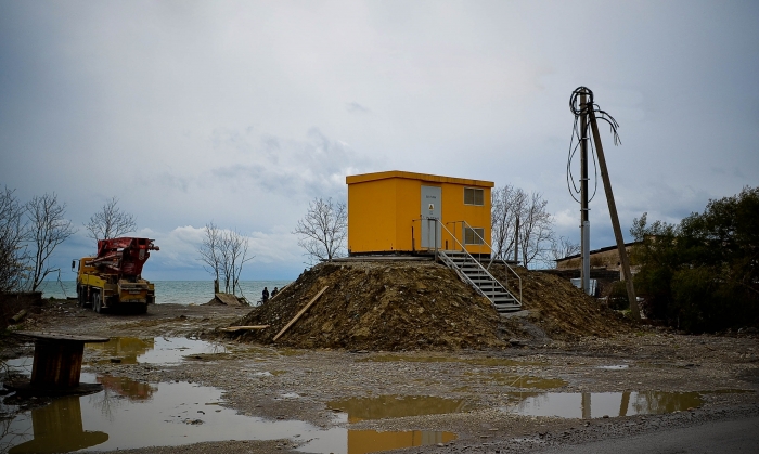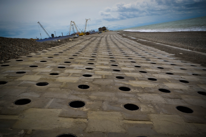 Вот такими плитами уложен берег вдоль олимпийской стройки.