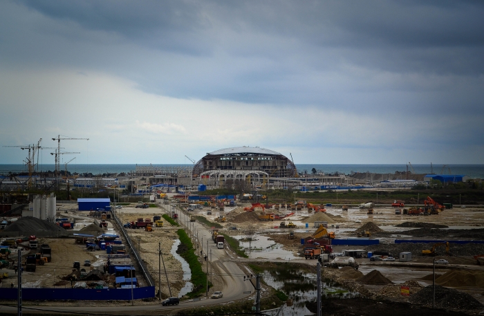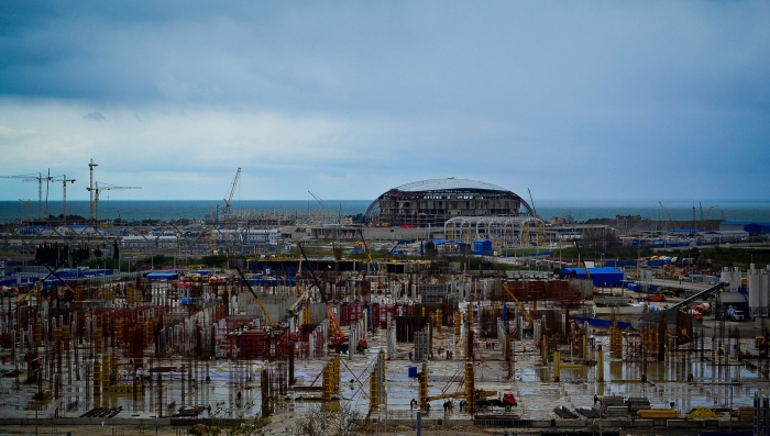 Будущий олимпийский парк прибрежного кластера. Здание в центре- Большая ледовая арена для хоккея.