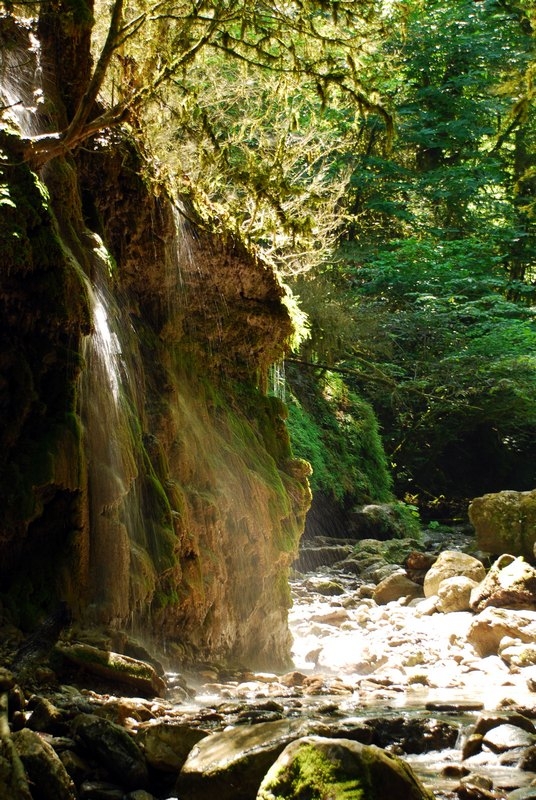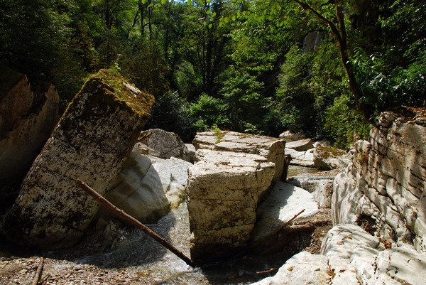 Тогда каньон Восточной Хосты, лицом вниз по течению. Когда есть вода, то прыгать с центральной каменюки на наклонную чуть влево и вперёд. Давно не ходил. Первое предположение было именно это.