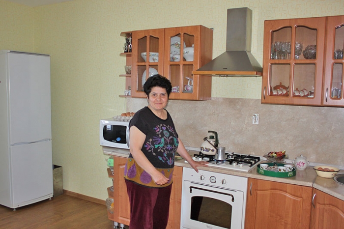 Глава семейства Андраник Завенович в ответ на расспросы о новом житье-бытье проводит на кухню, где хлопочет супруга Лиана Сетраковна.