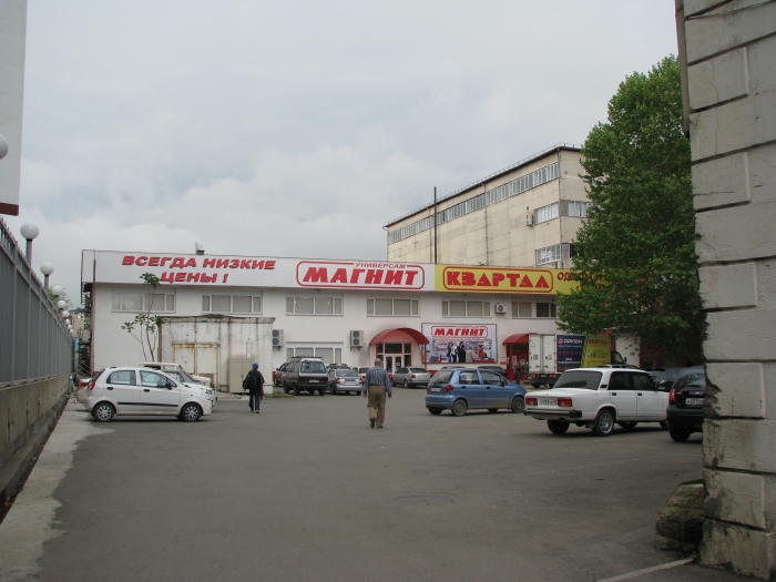К магазину «Магнит» можно пройти через узкие ворота, а сам он окружён такими же непроходимыми строениями