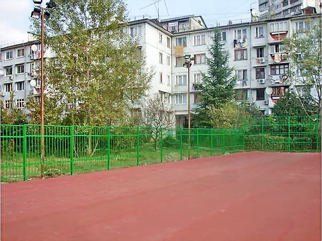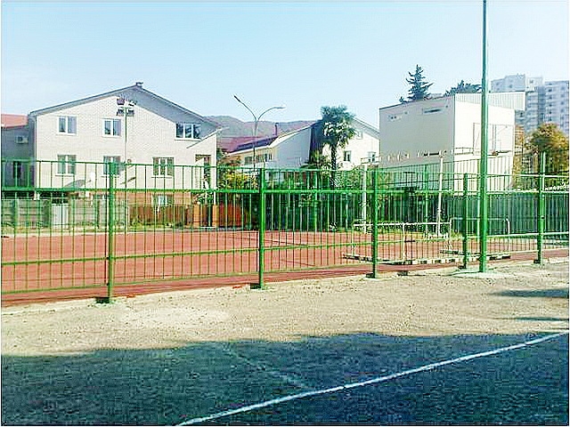 Школа № 82, улица Армавирская, 150. В данный момент полностью готова.Имеет специальное покрытие.