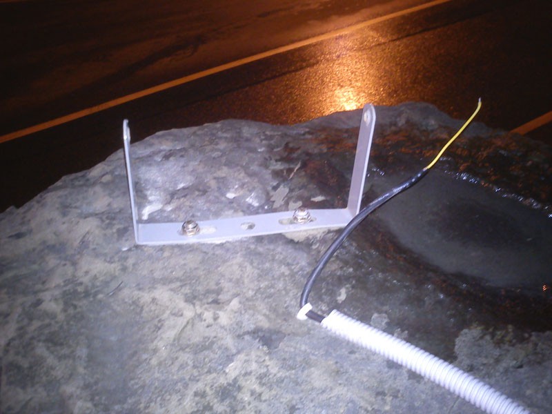 варварски выломано и украдено три из шести установленных год назад светодиодных прожекторов (из-за вырванного провода подсветка и не работала), один разбит