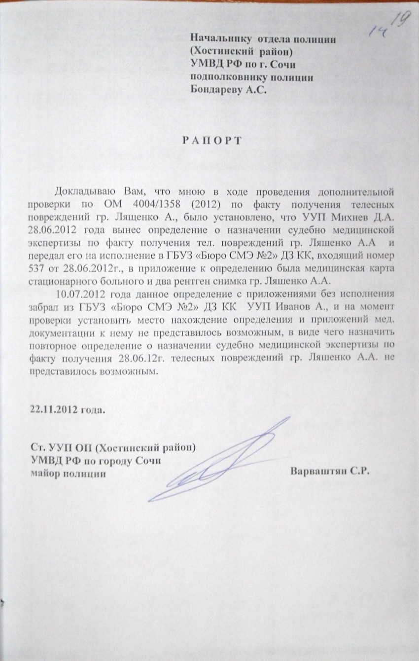 И таких документов масса прямо в деле. Но все и вся игнорят. Вот обидели Ляшенко и в е тут, а документы, ни кто и не утруждается. Всё равно возбудить не дадут.