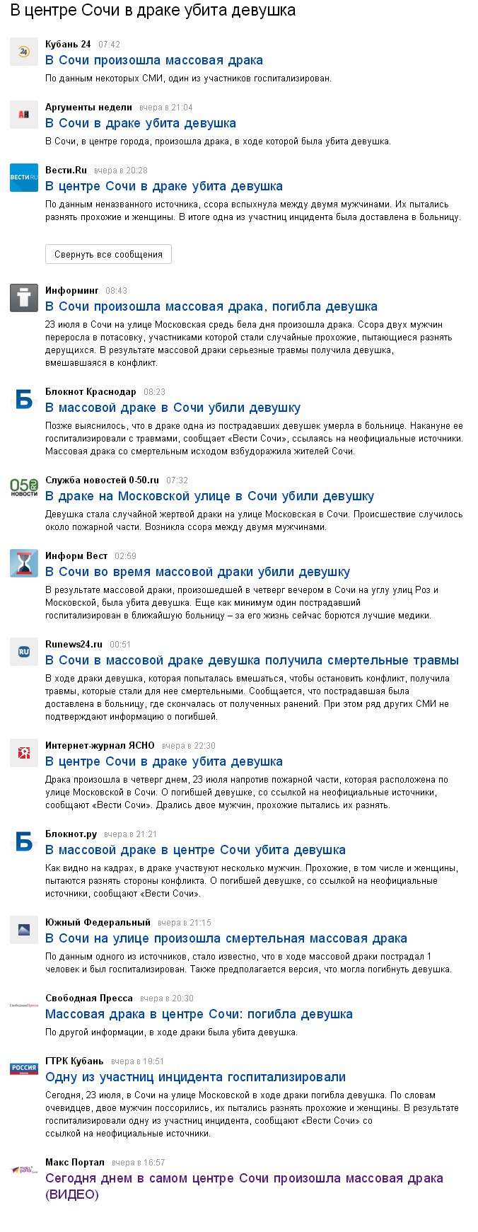 Из любого фуфла новость сделают. Да еще и желтизной припорошат. Новостники вконец охренели, сообщили, что в драке погибла девушка. Сами придумали, сами рассказали, сами получили по башке. Своя атмосфера ))))