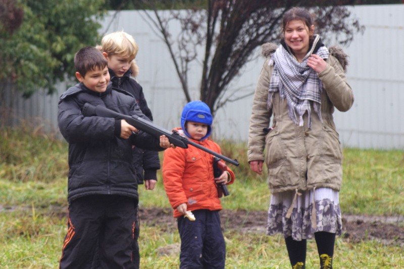 Несмотря на пасмурную погоду, дождь, слякоть, постепенно собралось много людей. Радость общения и подвижные игры не давали замерзнуть даже самым нежным участникам праздника.