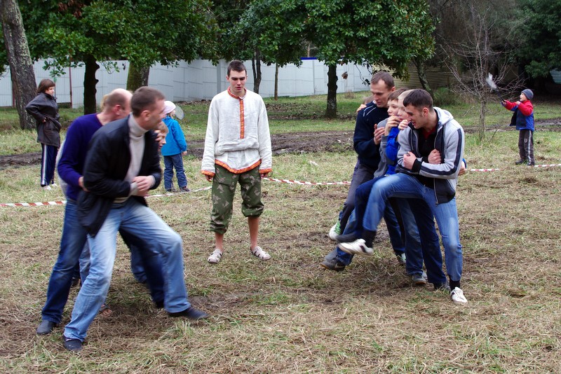 Успели поиграть в лапту, хоккей, футбол. Конечно же все желающие как всегда осваивали ходули, городки, лук, и т.д.