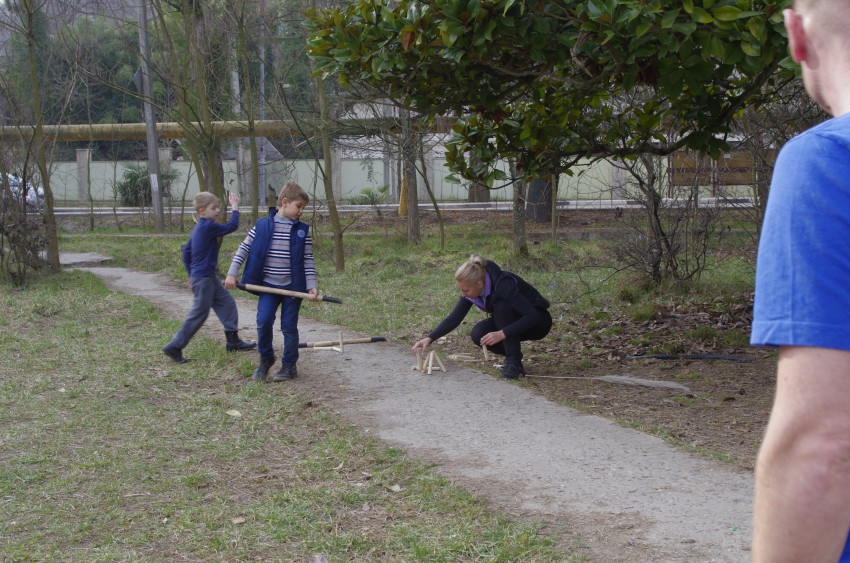 Ну вот и снова клубный день. По доброму обычаю, на Мацесте, в парковой зоне возле креста, начались различные игры: лапта, хоккей с мячом, городки, бабки, у всех желающих была возможность походить на ходулях, покрутить «кубаря», проверить свою меткость в стрельбе из лука, пневматического ружья, пройтись по натянутой стропе, попрыгать на большой скакалке.