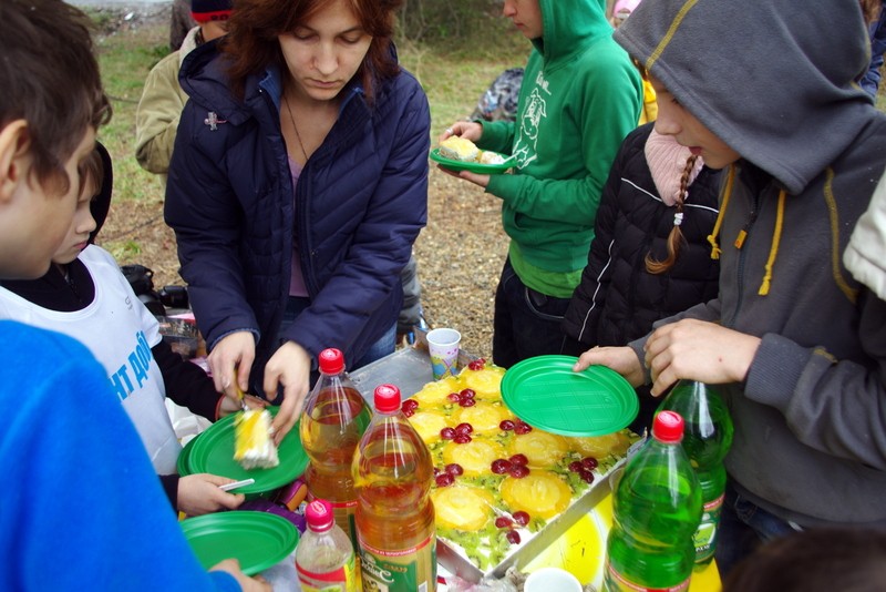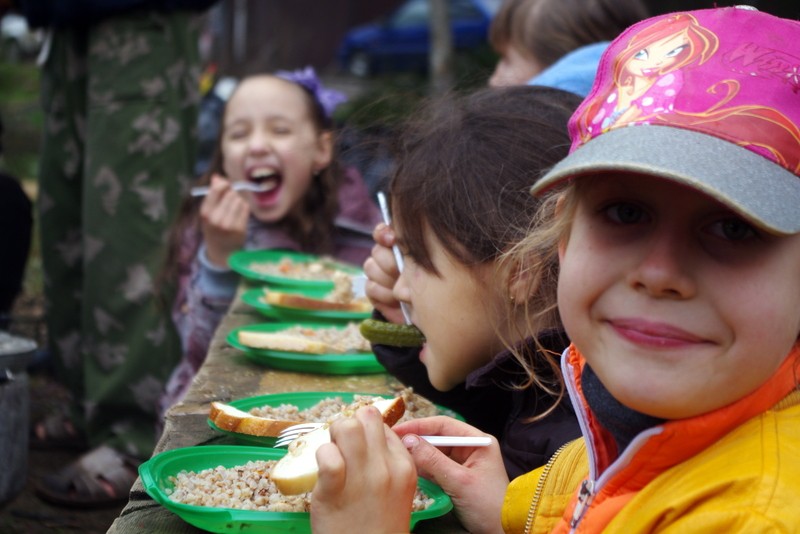 Фестиваль завершился, и тут подоспела каша, которая насытила всех гостей праздника. А на десерт был торт, по случаю дня рождения нашей Анечки (ей наконец-то исполнилось 6 лет) и, конечно же, чай из самовара.