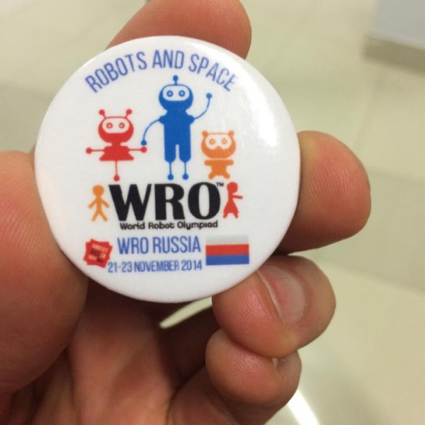 Такой вот значок получили участники Всемирной олимпиады по робототехнике: