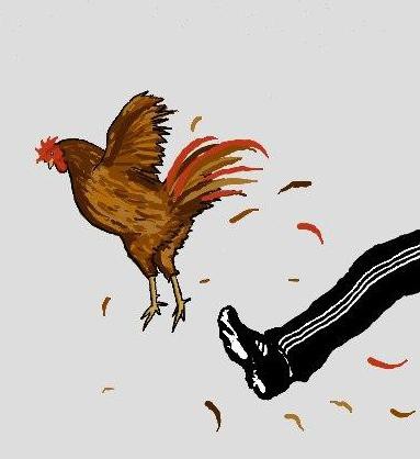 (Яйцо со скрипом открывается, оттуда выскакивает Петя Порошенко)